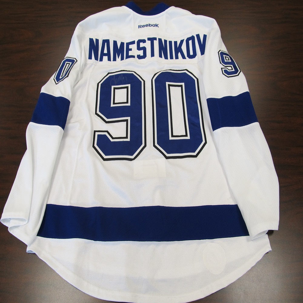 Vladislav Namestnikov Signed White 2014 tampa bay lightning game worn jerseys