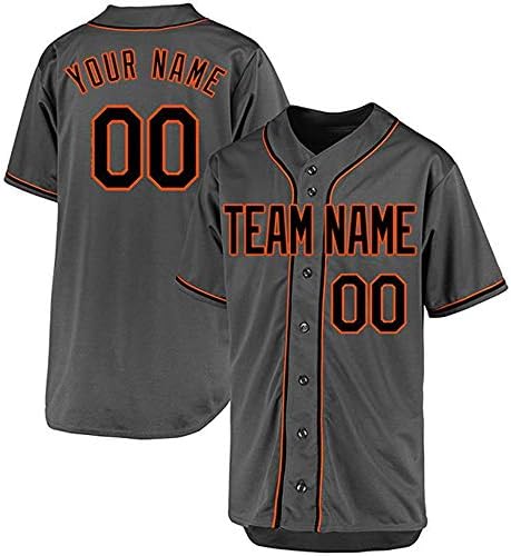 Dark-Gray Baseball Jerseys Button Down grey and orange baseball jersey