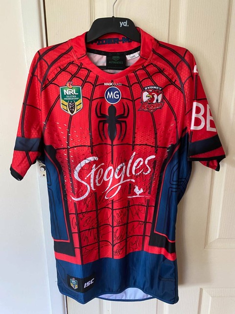 Signed and Worn Sydney Roosters NRL 9s roosters spiderman jersey