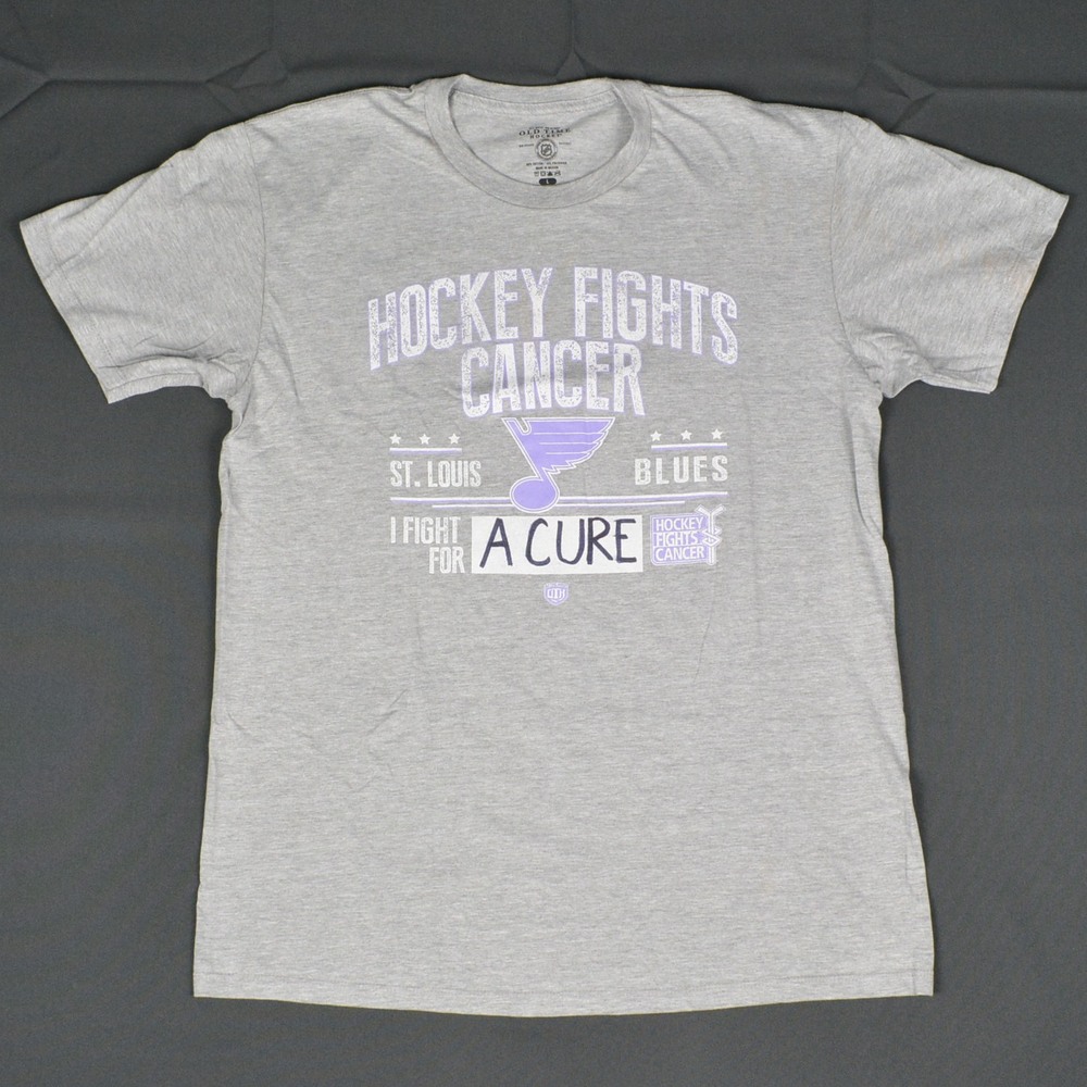 Hockey Fights Cancer Worn T-Shirt (Gray hockey fights cancer shirt