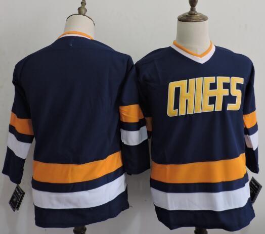JEFF HANSON Film Hockey Trikots Blau charlestown chiefs trikot
