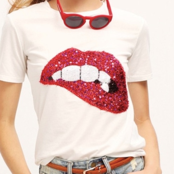 Sequins Lips Teeth Smile T Shirt | Poshmark red sequin lips t shirt
