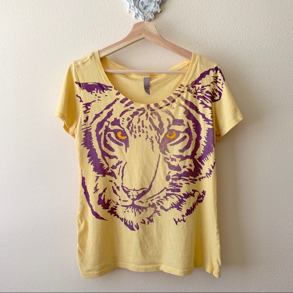Yellow And Purple Tiger Lsu V Neck Tee purple tiger shirt