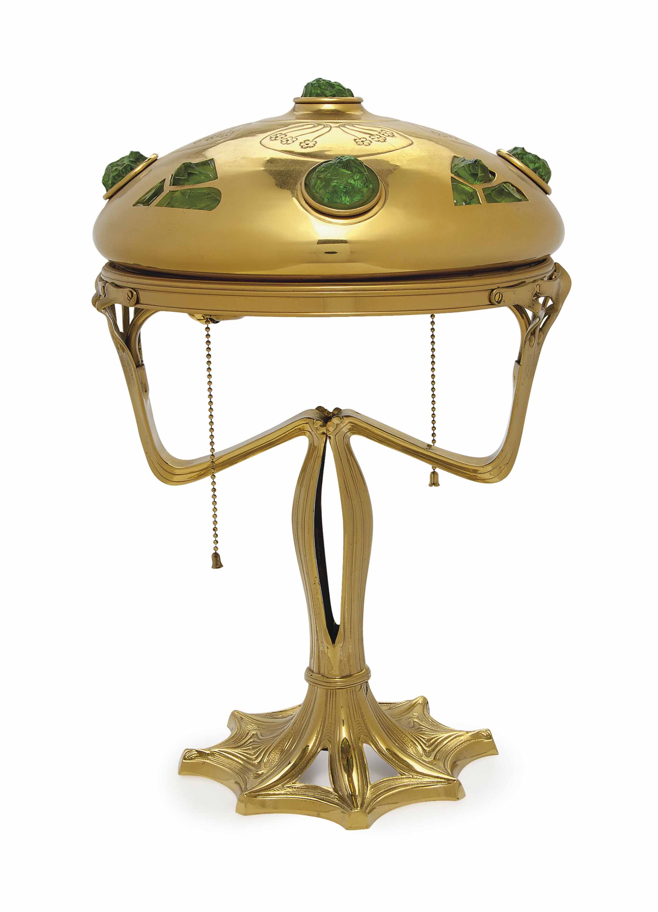 A GERMAN ART NOUVEAU BRASS AND GREEN art nouveau brass table lamp