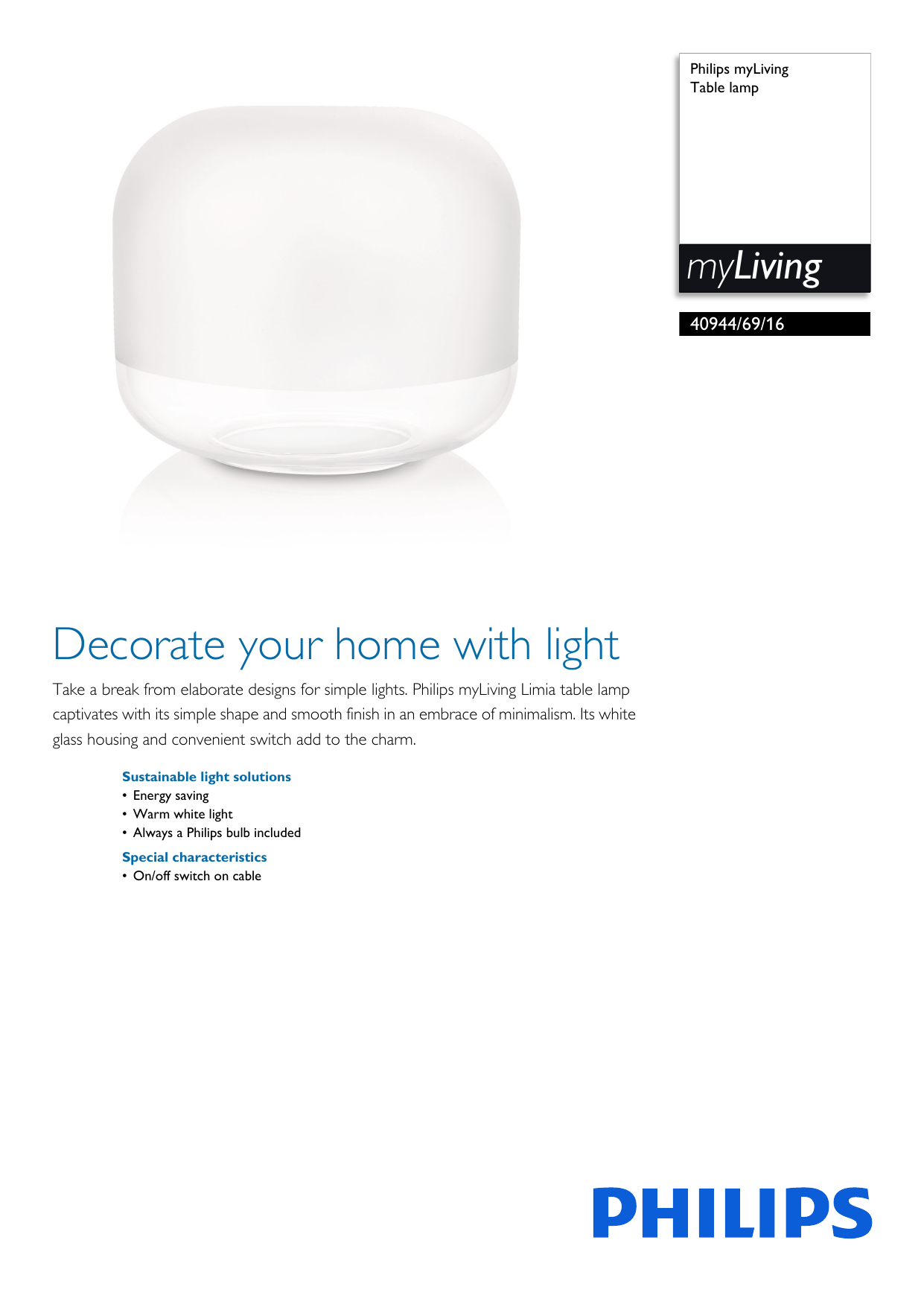 Specs Philips myLiving Table lamp philips myliving table lamp