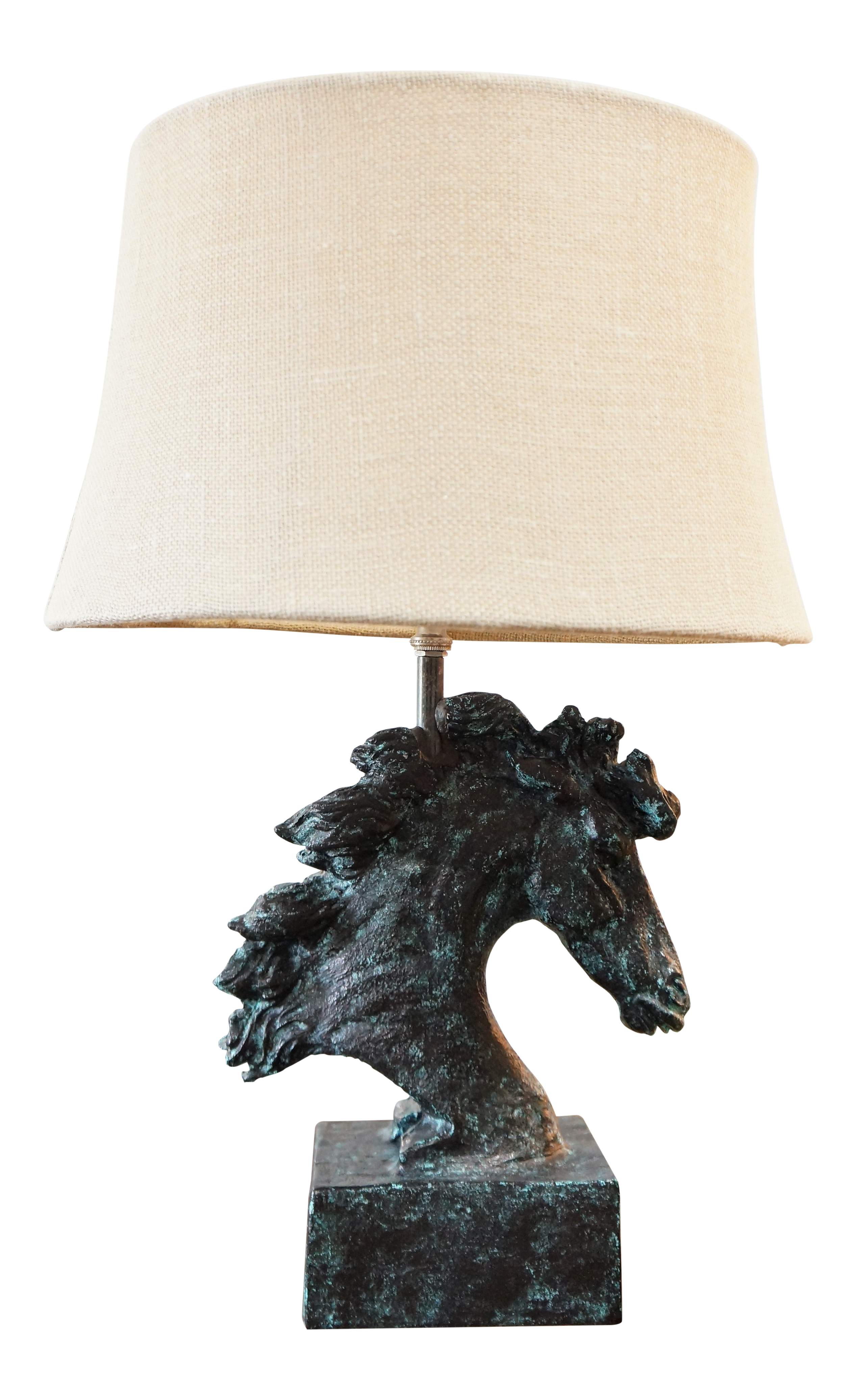 Verdigris Horse Head Lamp With a Burlap horse table lamps for sale