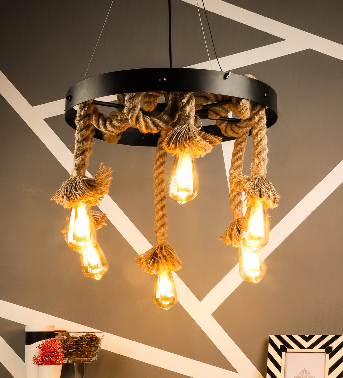 Buy Black Iron 6 Lights Cluster Hanging contemporary cluster chandelier