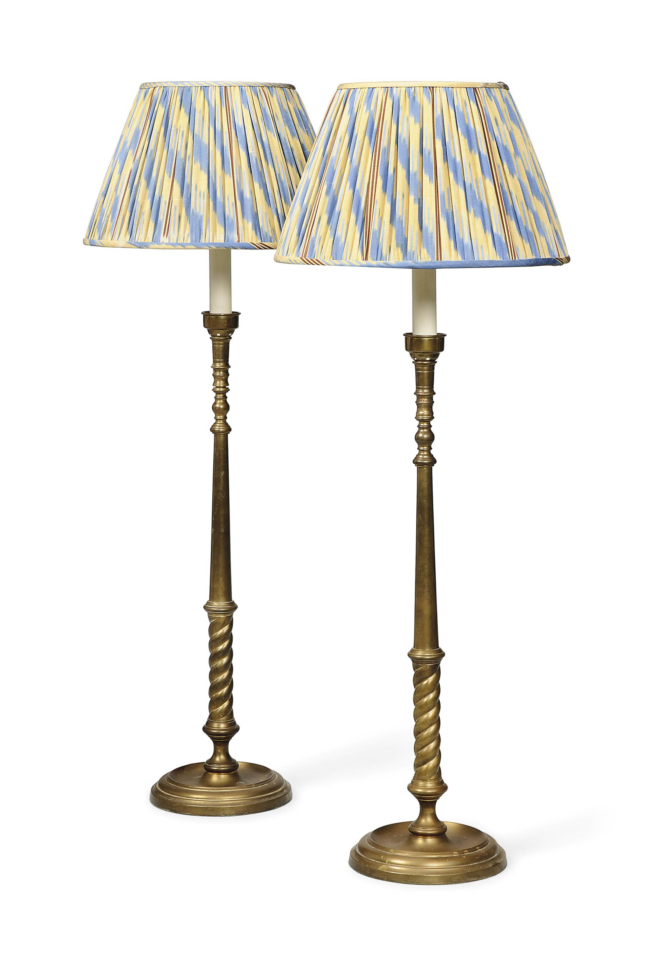A PAIR OF BRASS TALL TABLE LAMPS | 20TH pair of tall table lamps