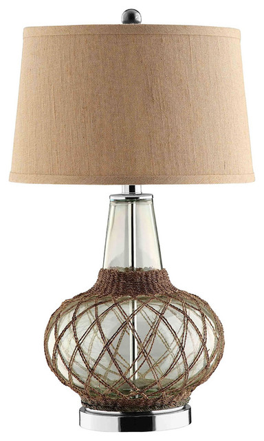 Burlap Fabric Shade-LT1050-CLR rope and sea glass table lamp