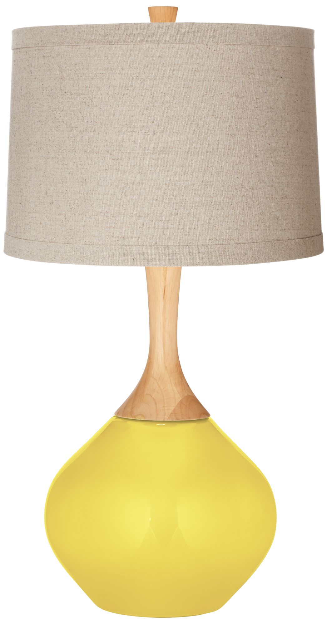 Lemon Twist Natural Linen Drum Shade table lamp with yellow shade