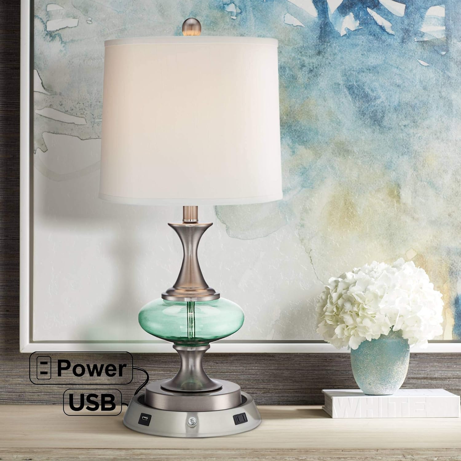 Reiner Modern Accent Table Lamp with blue green glass table lamps