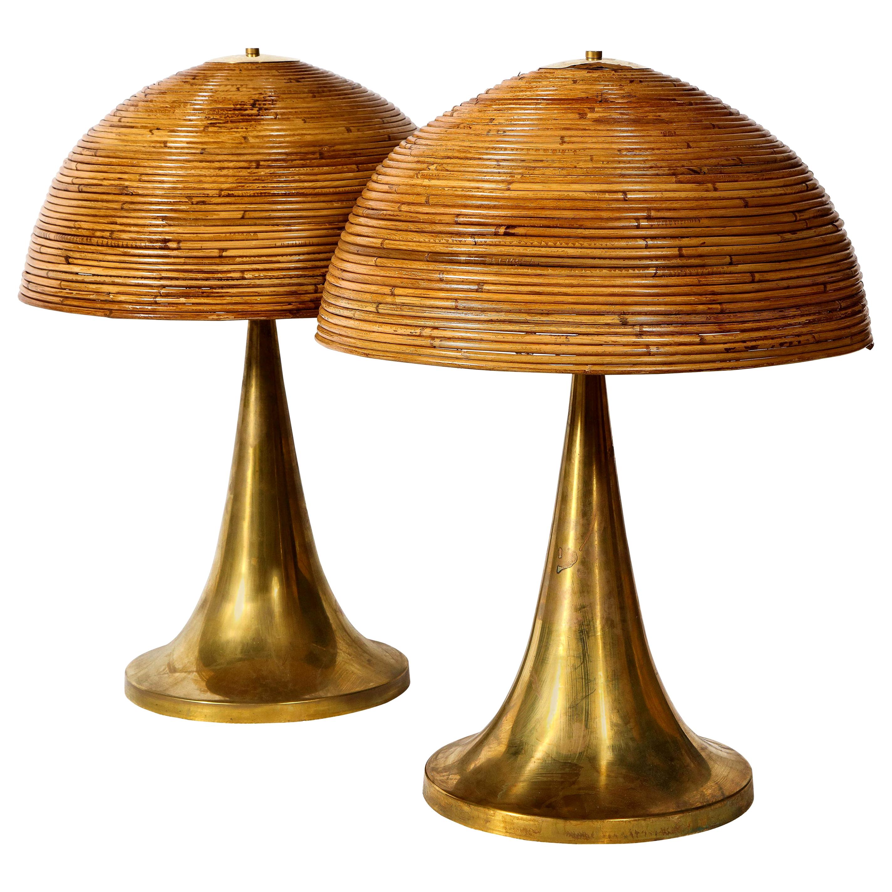 Large Bamboo Pair of Table Lamps with large brass table lamps