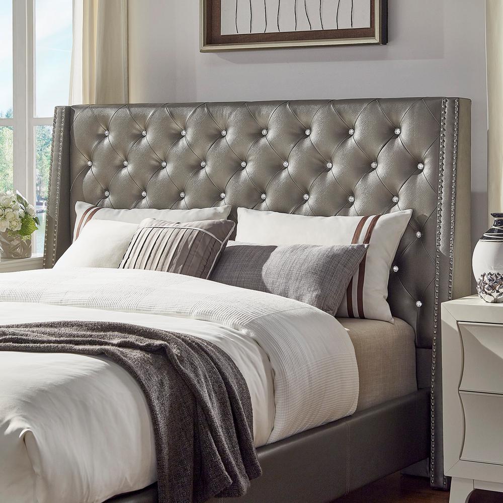 HomeSullivan Venus Silver Metallic King silver headboard with lights