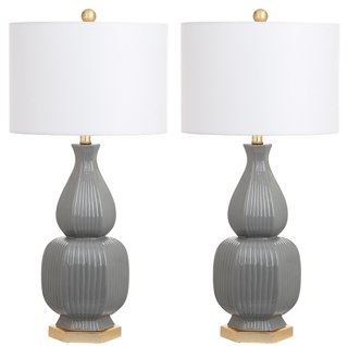 S/2 Welbon Table Lamps, Gray/Gold | One gray bedside lamps