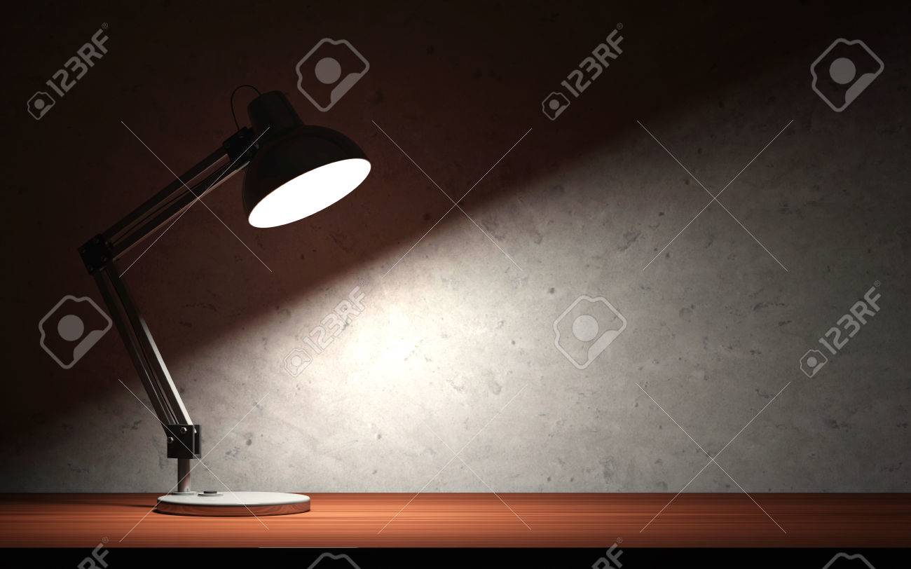 Metal Desk Lamp At Night On The Wooden lampat desk lamp