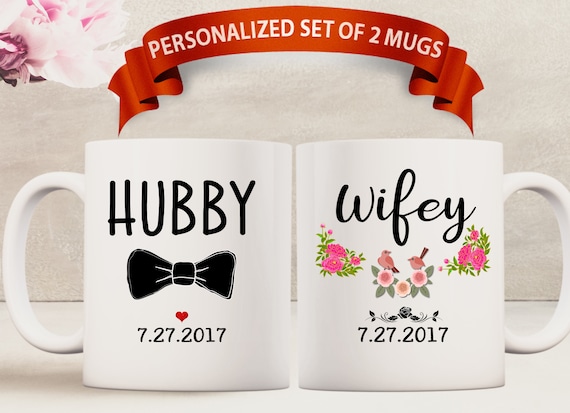 2020 Hubby Wifey Mug Set, Wedding Gift mugs for husband and wife