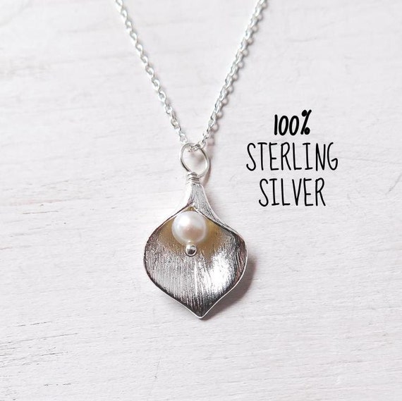 Calla Lily Necklace All Sterling Silver silver gift for wife