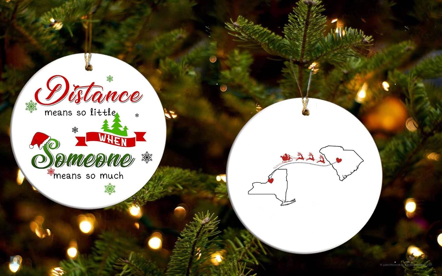 Merry Christmas Ornament Two State Map long distance christmas ornament