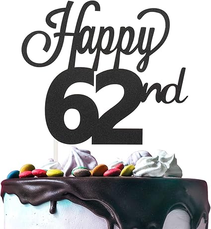 Happy 62nd Birthday Black Glitter birthday party ideas for 62 year old woman