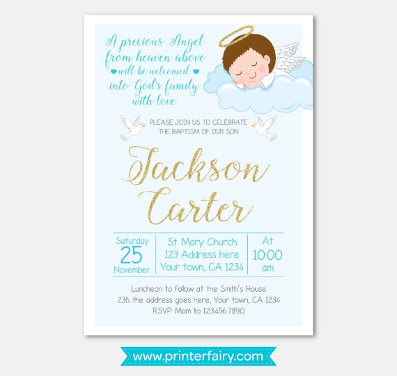 Boy Baptism Invitation, Christening personalized baptism invitation