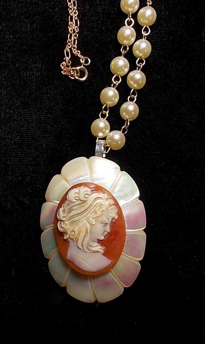 Vintage Mother of Pearl Carved Rose antique mother of pearl necklace