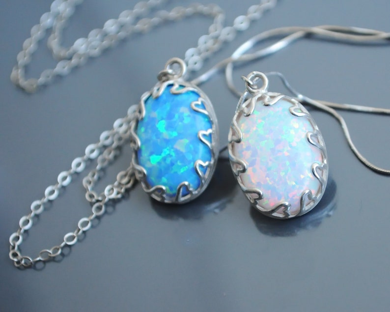 White Opal necklace silver. Gift for opal mothers necklace