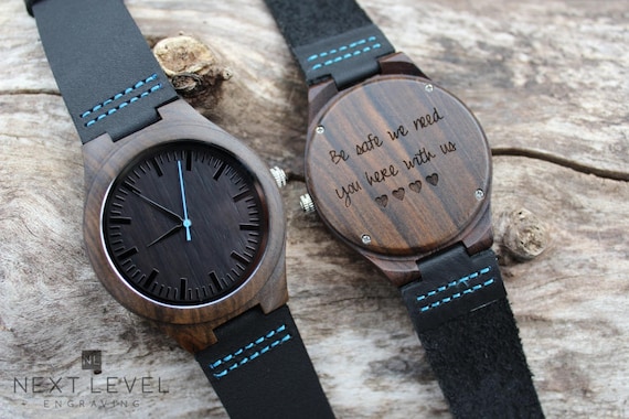 Buy Custom Engraved Wooden Watch Blue boyfriend watch engraved