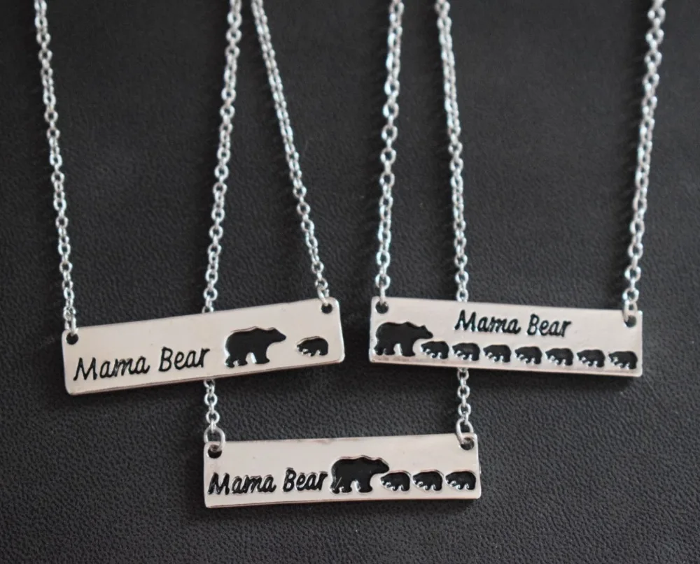 1PCS Engraved Letters Silver Mama Bear silver mama bear necklace