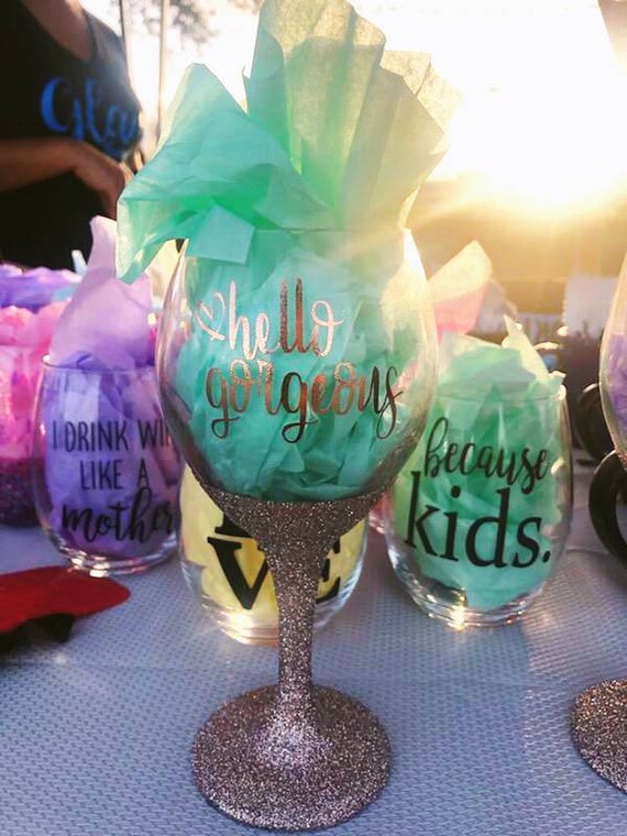 Hello Gorgeous Glitter Wine Glass Gifts mother's day wine glass ideas