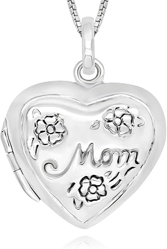 925 Sterling Silver Flower Mom Heart mom heart locket necklace