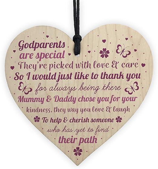 Wooden Heart Godmother Godfather Asking thank you for christening gift