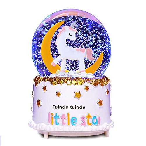 VECU Unicorn Snow Globe, Snow Cartoon musical snow globe for baby girl