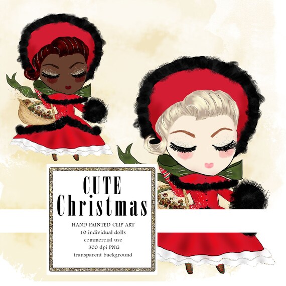 Cute Digital Doll Winter Clipart | Etsy cute christmas girl
