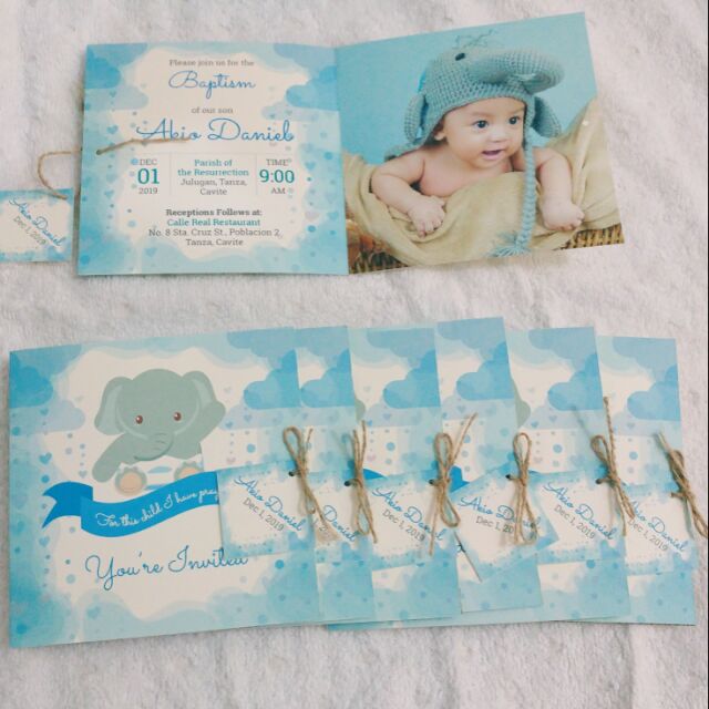 Water Color Baptismal / Christening sample giveaways for christening baby boy