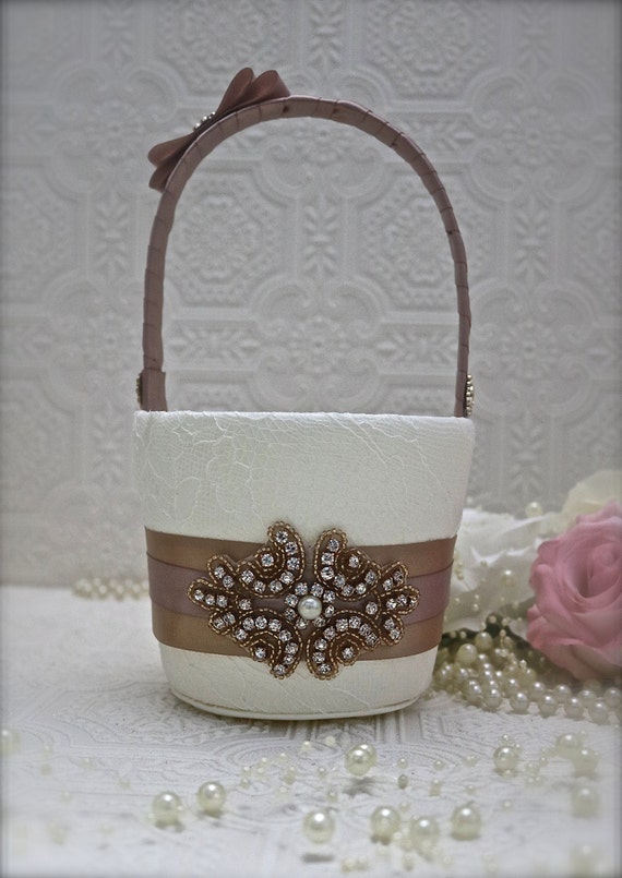 Gold Wedding Baskets Lace Wedding rose gold flower girl basket