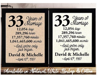 Personalized Annivesary Gift 33rd Year 33 year anniversary gift for wife