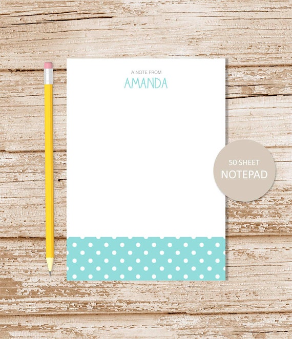 personalized notepad . POLKA DOTS personalized stationery for little girls