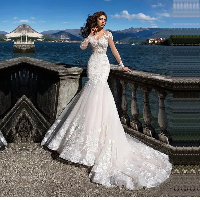 Sereia vestidos de casamento com mangas compridas praia vestido de noiva princesa renda com trem de varredura robe mariage|Vestidos de Noiva| - AliExpress vestido de noiva princesa renda