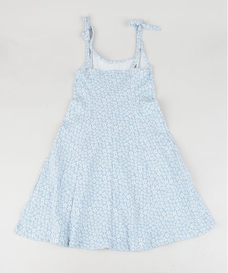 Vestido Juvenil Estampado Floral com Botões Alça Fina Azul - cea vestido longo estampado juvenil