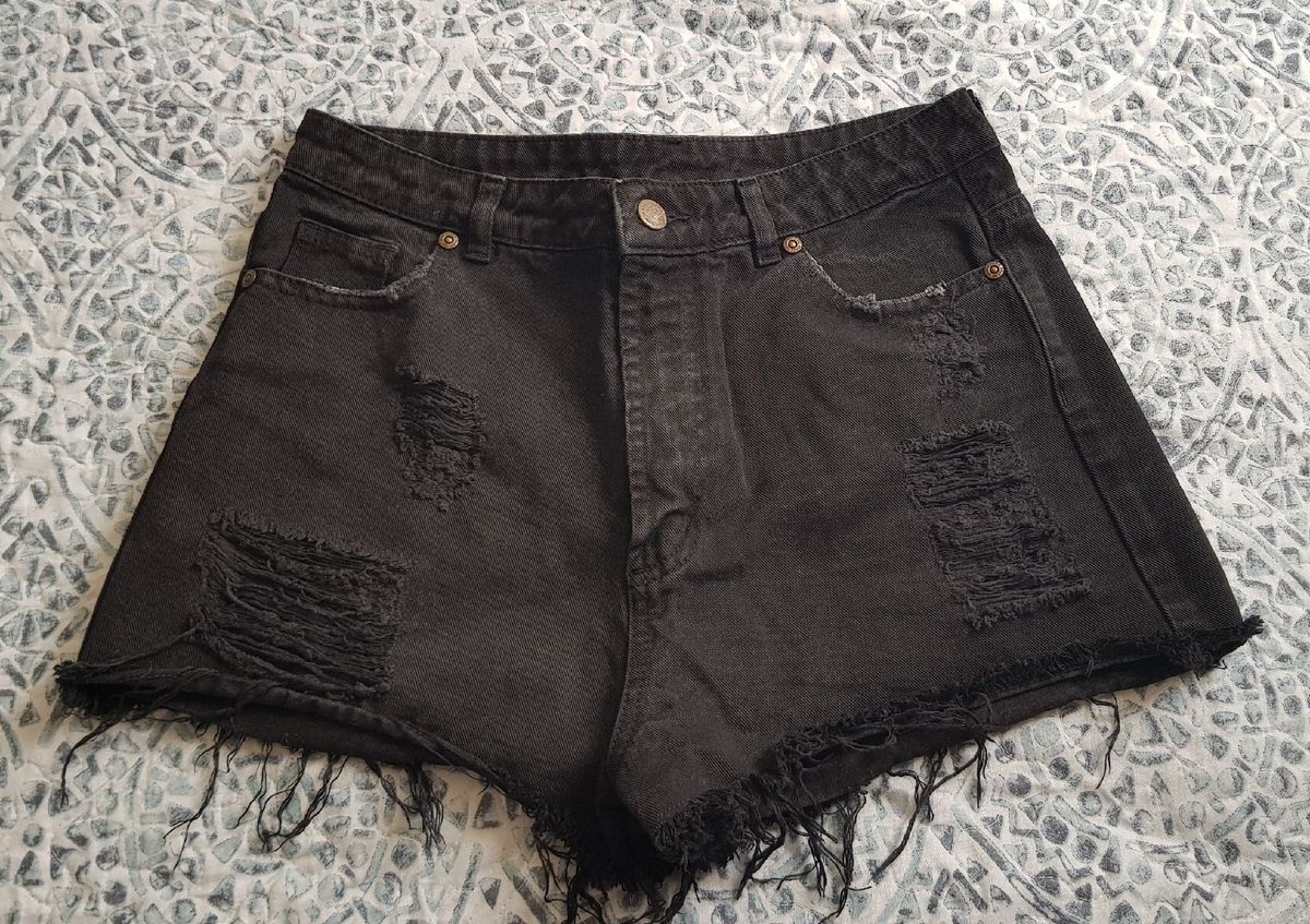 Short Jeans Preto Desbotado Farm | Shorts Feminino Farm Nunca Usado 32143759 | enjoei shortinho preto jeans