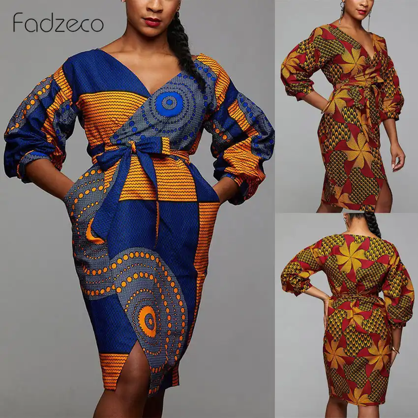 Fadzeco vestido estilo africano, vestido africano com decote em v vestido midi|Roupas africanas| - AliExpress vestidos africanas