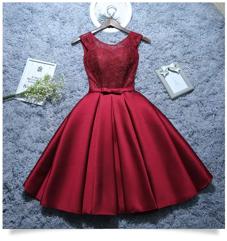 Novo vestido de noite curto cetim renda vinho vermelho cinza a linha da noiva festa formal baile formatura vestidos robe de soiree|Vestidos de Festa| - AliExpress vestido vinho curto com renda