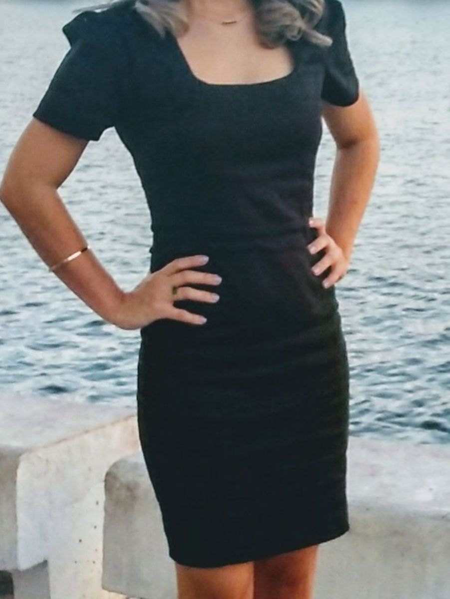 VESTIDO TUBINHO DE SARJA COM ELASTANO E DETALHES NO BABADO NA BARRA E MANGA VESTIDO P M … | Vestidos estilosos, Moda, Vestidos