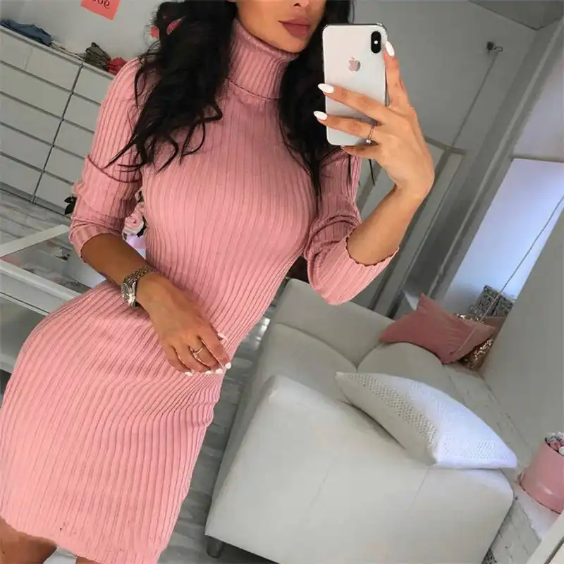 Mulheres Gola Alta Vestido De Malha Fina De Lã Mini Vestidos Cor Sólida Moda Feminina Básica de Manga Comprida Outono Inverno Vestidos Quentes hot| Vestidos| - AliExpress vestido de malha fina