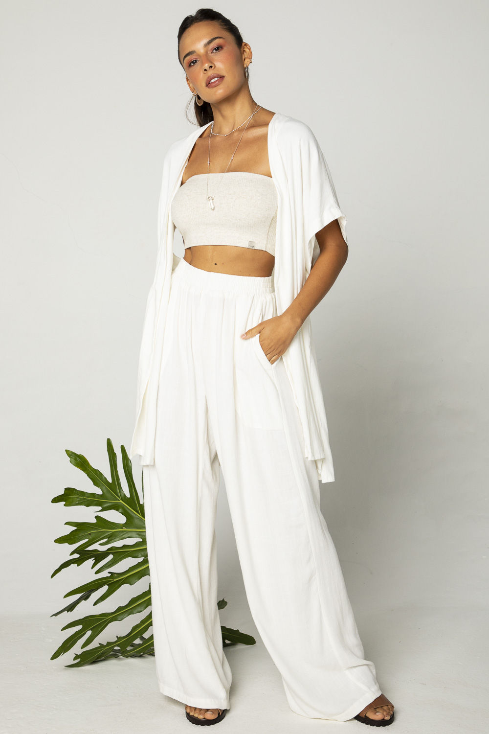 calca de linho off white