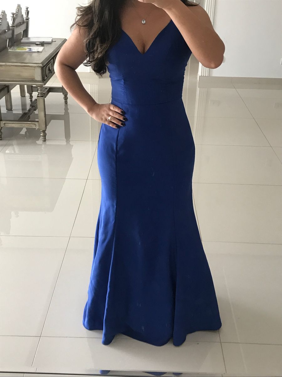 Vestido de Festa Azul com fenda lateral – Aluguel de Vestidos de Festa RJ | Fino Traje Moda Festa | Rio de Janeiro
