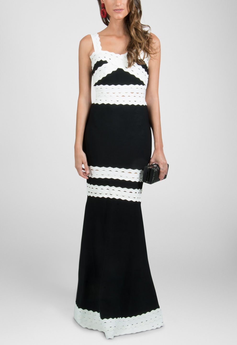 Vestido Petra longo de alça grossa bandagem - preto e branco – PowerMarket vestido longo de alça grossa