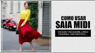 COMO USAR SAIA MIDI - Quadril largo, estatura baixa, com sapatilha vestido midi para quadril largo