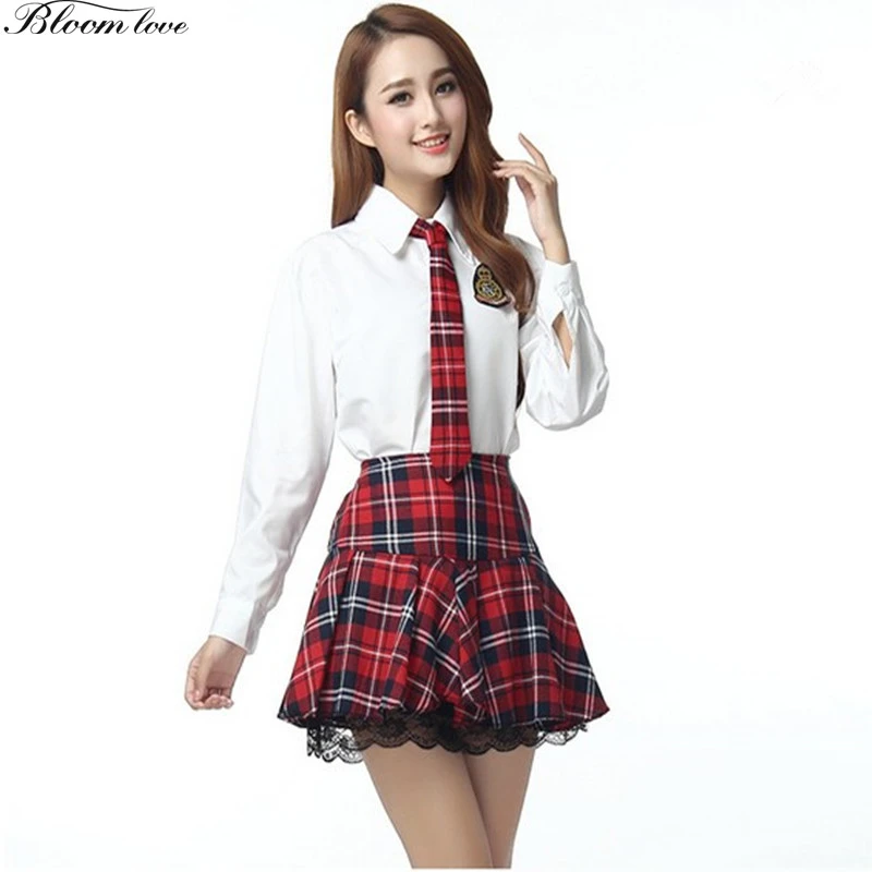 GYHYD Escocês Saia Xadrez Vermelha Camisa Branca Escola Uniforme do Marinheiro da Marinha Uniformes Coro Ternos Cheerleader Marinheiro Japonês|school uniform|japanese school uniformschool uniform white shirts - AliExpress saia xadrez escocês