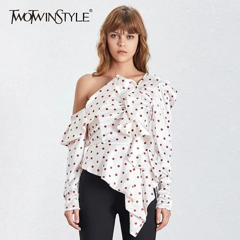 Blusas e Camisas Fora do Ombro Twotwinestilo Elegante Polka Blusa Feminina camisa verao feminina